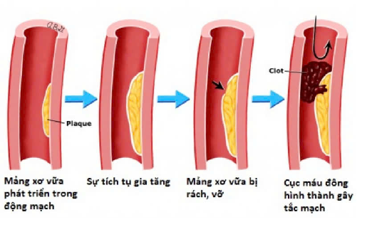 Mảng xơ vữa nứt vỡ, tạo huyết khối |