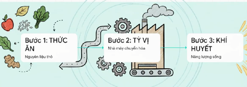 Tỳ vị đóng vai trò như một nhà máy chuyển hóa thức ăn thành năng lượng (khí huyết) để nuôi cơ thể